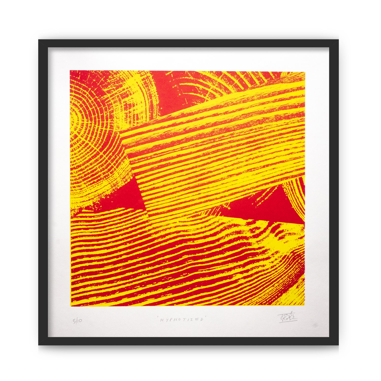 Wood relief two colour screen print: Magenta pink and process yellow